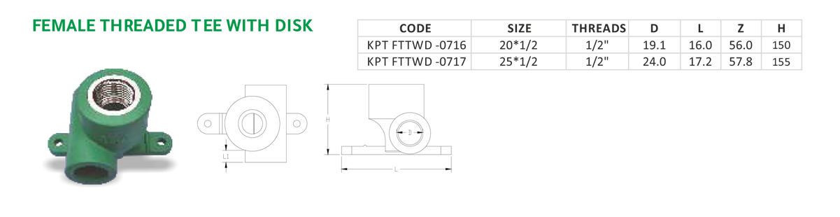 FEMALE THREADED TEE WITH DISK
