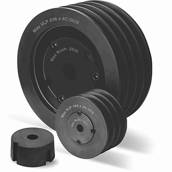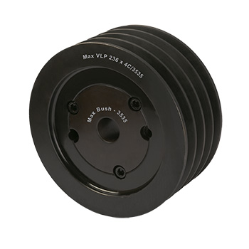 Max V-Lock dual duty taper lock bush pulleys. Eliminate re-boring and keywaying problems since the pulley need not be finished according to the bore and keyway requirements. Instead of taper bushes, changes in the pulleys and their position can easily be made. We manufacture Max V-lock Pulleys as per IS standard. These metric pulleys are precision machined and have dual duty grooves to perfectly match with our Maxspare Nirlon VBelts range.